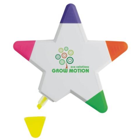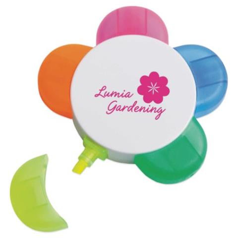 mit einem grünen, gelben und rosafarbenen Marker.